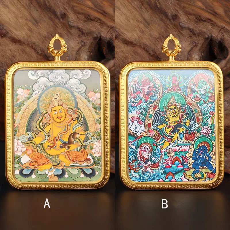 Tibetan double-sided gold-painted Bodhisattva thangka pendant