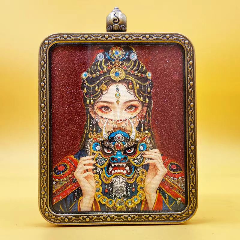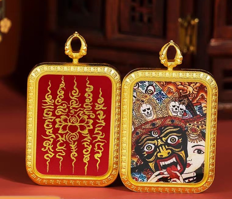/ Tibetan hand-painted blessing thangka pendant